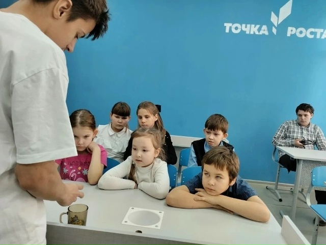 Увлекательная химия для школьников в Центре «Точка Роста» 8 января 2026. Во время зимних каникул в нашем образовательном центре «Точка Роста» проводятся интересные внеурочные занятия по химии специально для учащихся 6-7 классов. Наши мероприятия позволяют школьникам познакомиться с миром науки весело и познавательно. Учащиеся погружаются в удивительный мир химической реакции, учатся проводить опыты и узнавать новые факты об окружающем мире. Занятия направлены на развитие интереса к естественным наукам и формирование основ научного мышления.